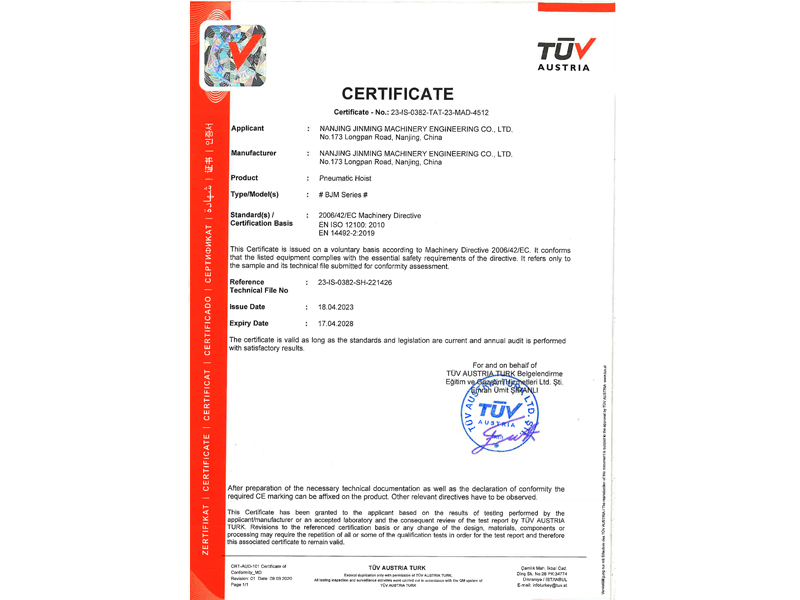 2025-03-21南京今明機械工程有限公司為中鐵山東李樓煤礦,定制4臺32t氣動葫蘆用于盾構機組裝